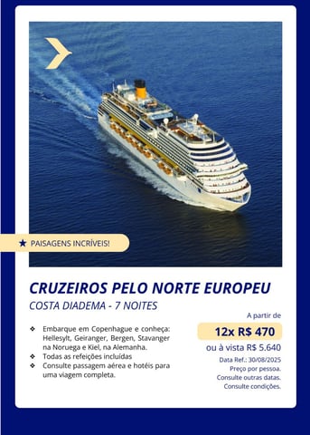 Agora, além das melhores opções de viagens e hospedagens, a AlturMilhas traz novidades: cruzeiros exclusivos para destinos incríveis. Viva a experiência de viajar pelo mundo em alto-mar, com conforto e praticidade.